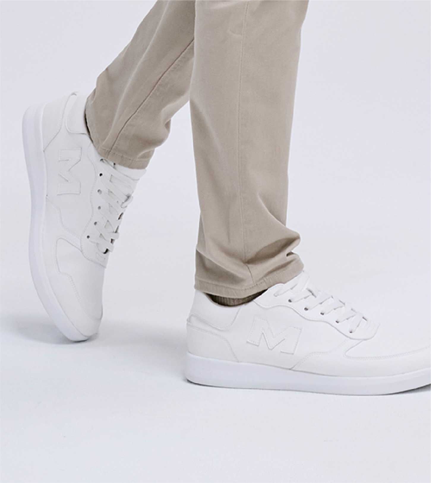 採用環保「 純素皮革 」並不含任何動物成分,且提供鞋履回收服務,將舊鞋再製成環保盆栽。此款輕量小白鞋具備防潑水、透氣、耐污等功能,以及獨家發明專利製程的鞋底,擁有絕佳支撐力、反彈力,非常適合日常、通勤和旅行穿著。