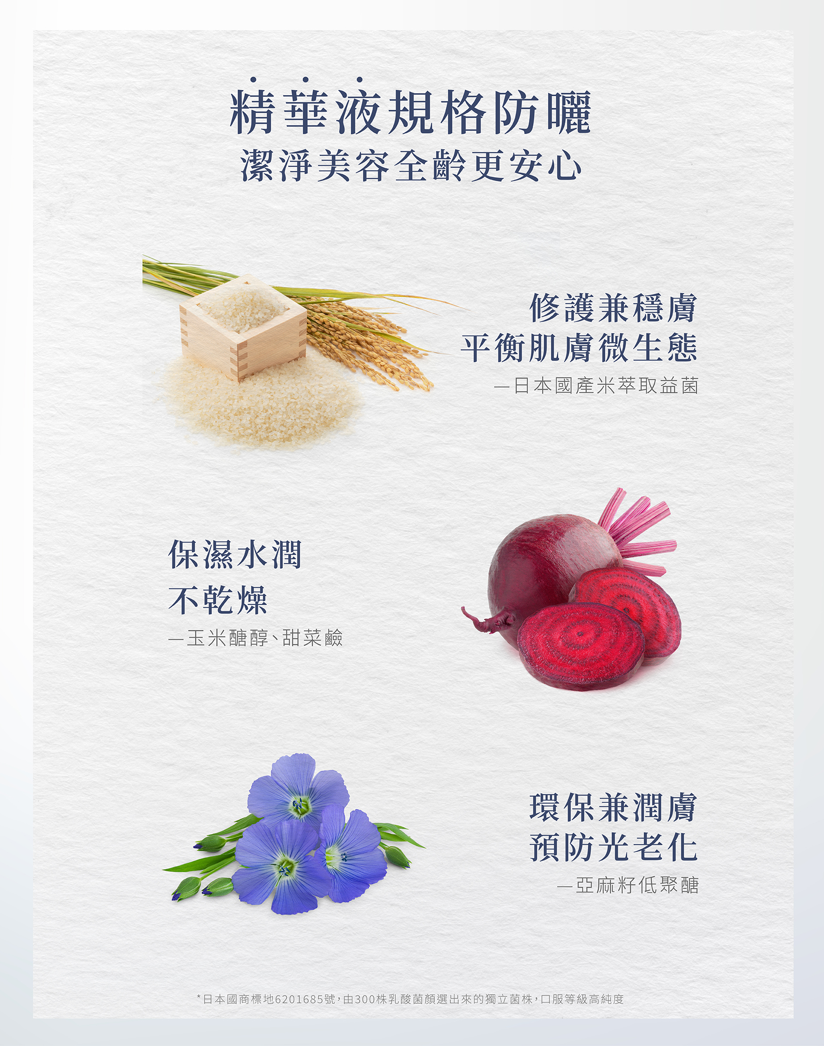 ◆ 防曬X保養,獨家添加「日本專利益生菌」