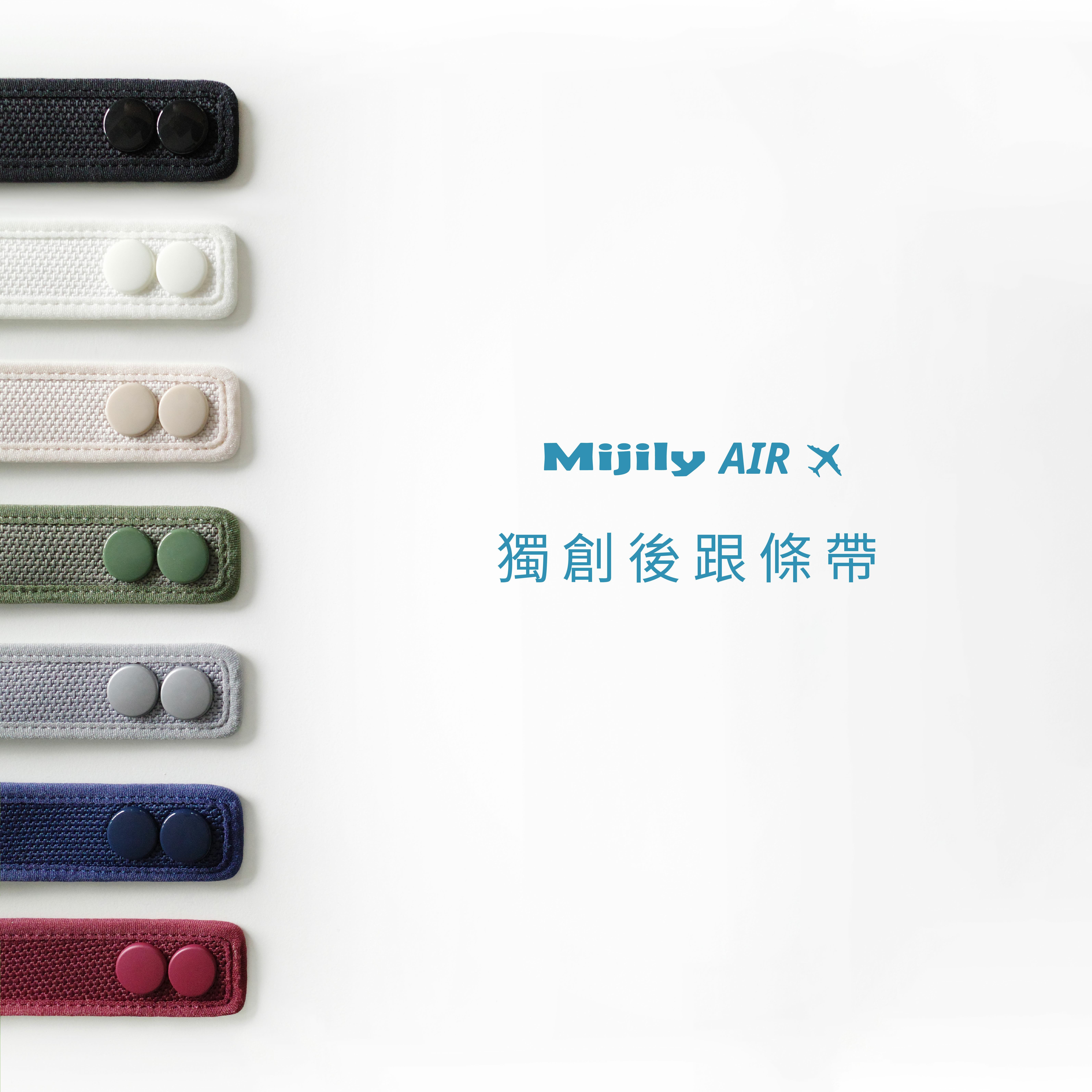 懶人拖穿法可將雙腳後跟條帶對調互換,Mijily Logo 就能反過來變成正面囉!